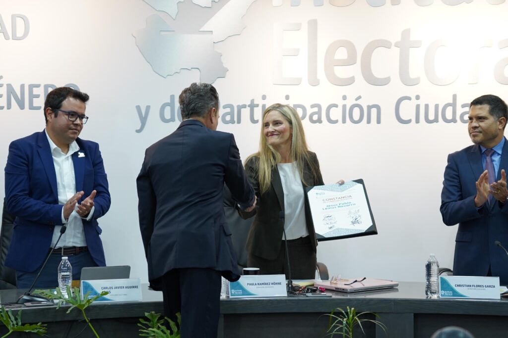 En esta sesión llevada a cabo este miércoles 30 de octubre, se declaró gobernador constitucional electo a Jesús Pablo Lemus Navarro, a quien la Consejera Presidenta del IEPC Jalisco, Paula Ramírez Höhne, entregó una nueva constancia, en presencia de las y los consejeros electorales; el secretario ejecutivo; y las y los representantes de la mayoría de los partidos políticos.
