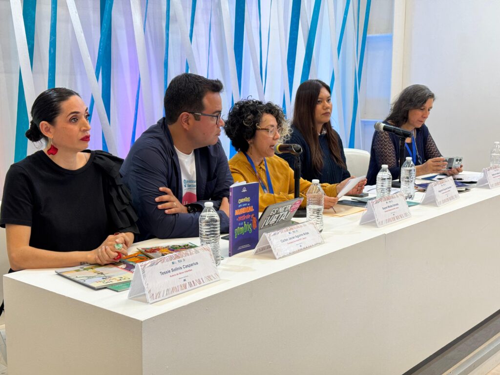 La presentación estuvo a cargo de las autoridades electorales de Nuevo León, la consejera electoral Alejandra Esquivel Quintero; Tessie Solinis Casparius, autora de libros infantiles, Sofía de la Mora Campos integrante del comité editorial del IEEPC Nuevo León, y los anfitriones Carlos Javier Aguirre, consejero electoral de Jalisco y Sayani Mozka Directora Editorial.