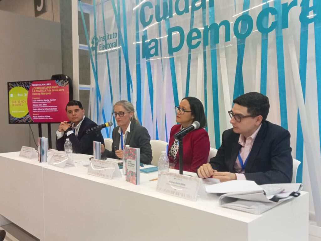 La obra ¿Cómo recuperamos la política?, como parte del programa cultural que ofrece el Instituto Electoral y de Participación Ciudadana de Jalisco (IEPC) en la Feria Internacional del Libro de Guadalajara (FIL) fue presentada esta tarde en el stand del organismo electoral. Con un lenguaje claro y ejemplos pertinentes, el autor busca fomentar una comprensión más amplia sobre cómo recuperar la política.