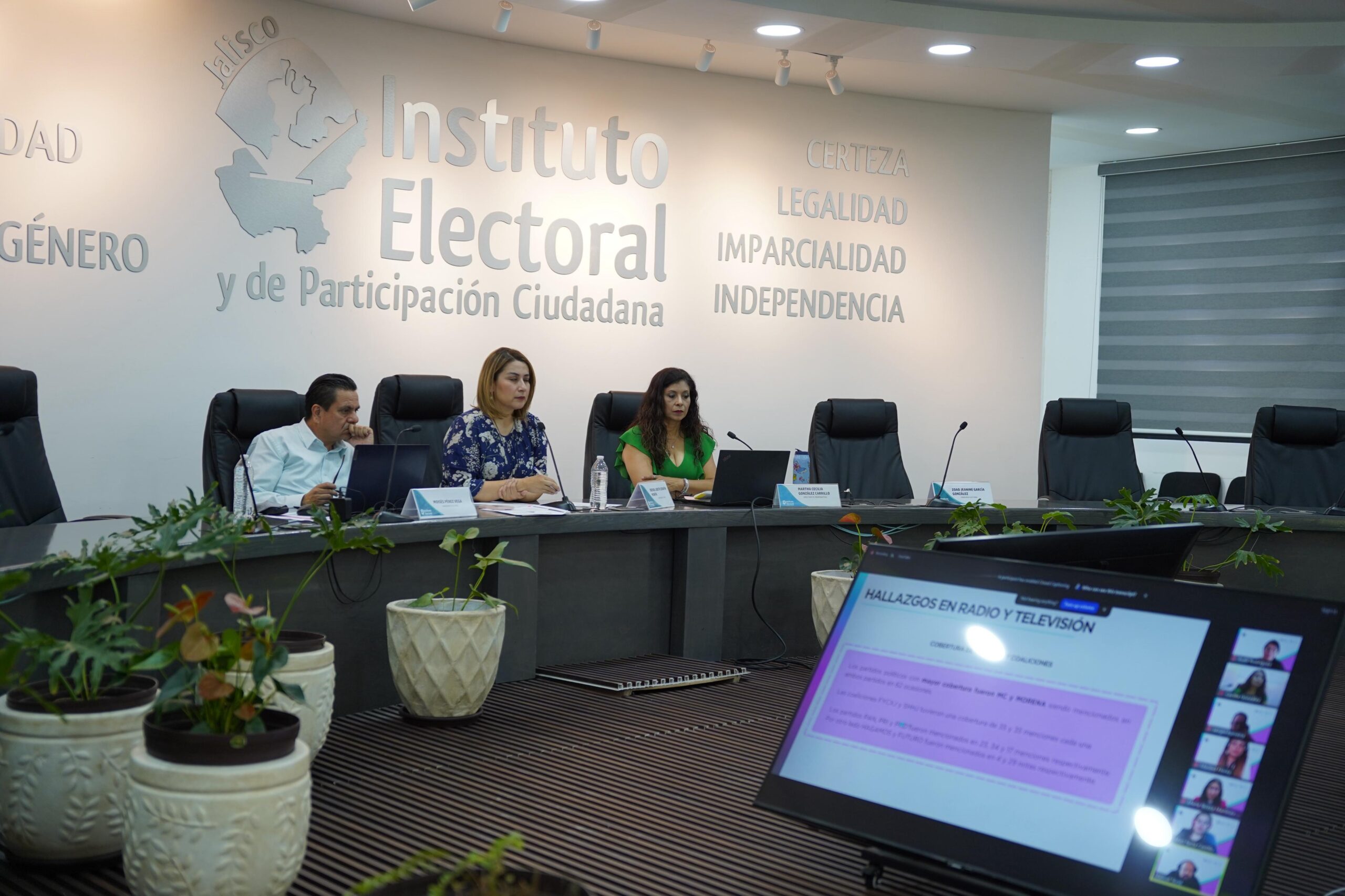 En esta sesión estuvieron presentes por parte del IEPC Jalisco, la Consejera Presidenta de la Comisión de Prerrogativas a Partidos Políticos, Brenda Judith Serafín Morfín; el Consejero Electoral Moisés Pérez Vega; y la Directora de Prerrogativas, Cecilia González Carrillo.