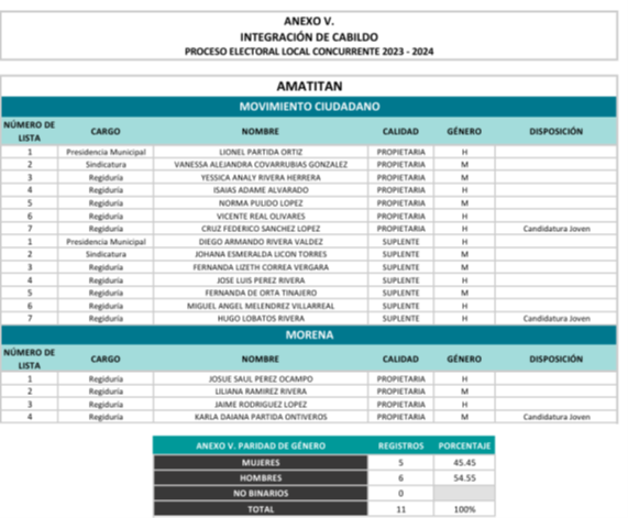 En el caso del juicio SG-JRC-289/2024 del municipio de Amatitán, se realizó un nuevo cálculo para la asignación de regidurías de representación proporcional con base en la sentencia dictada por la Sala Regional, por lo que se advierte que sí se modifica la integración del Ayuntamiento quedando en los términos del siguiente anexo (página 2), dejando sin efecto el acuerdo IEPC-ACG-201/2024 del pasado 9 de junio correspondiente a la validez y calificación de la elección, y se expide una nueva constancia de mayoría relativa a la planilla registrada por el partido político Movimiento Ciudadano, y una constancia de asignación por el principio de representación proporcional al partido Morena, dejando sin efectos las emitidas anteriormente.