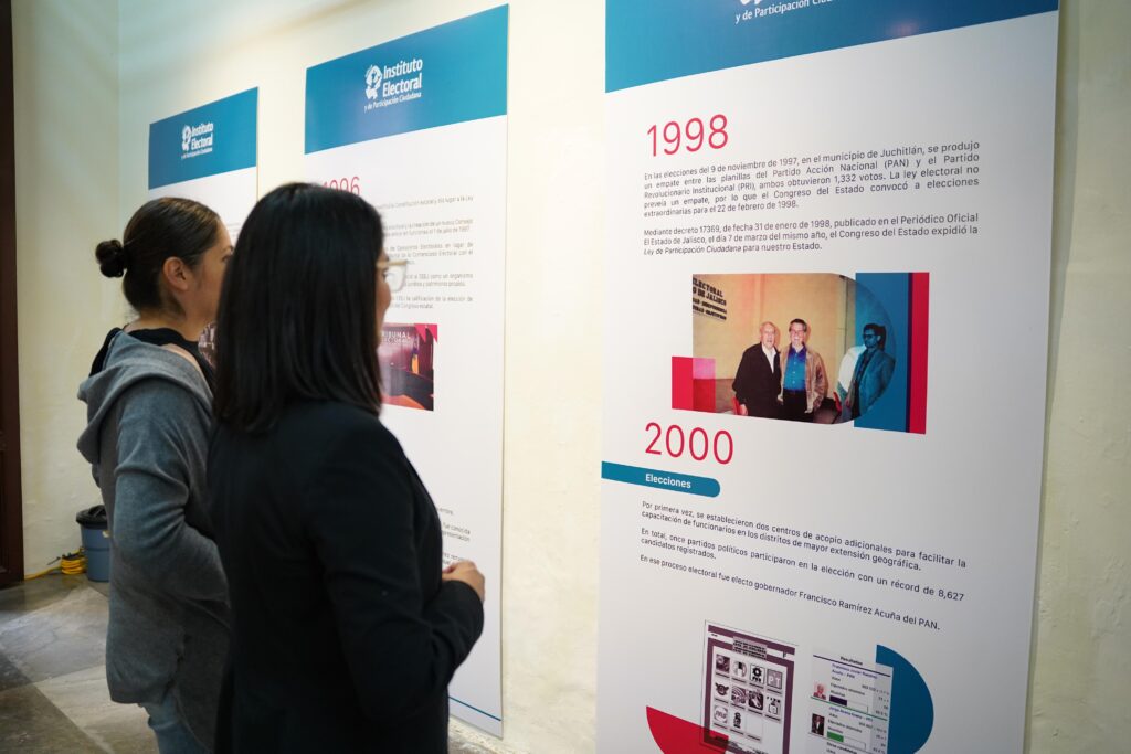 En esta línea de tiempo se podrán explorar los momentos clave que han definido el desarrollo de 30 años de elecciones democráticas y pacíficas en Jalisco. La exposición recoge 30 años de reivindicación democrática en el que se han alcanzado esfuerzos como la alternancia partidista, la ciudadanización de los organismos electorales, la paridad de género en las candidaturas y cargos de representación, el voto de jaliscienses radicados en el extranjero, las movilizaciones civiles y hasta el voto mediante urnas electrónicas, entre otros.