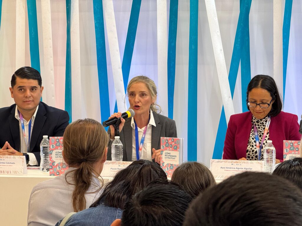 La presentación de la obra fue moderada por la Mtra. Paula Ramírez Höhne, Consejera Presidenta del IEPC Jalisco y acompañada por la Dra. Azul América Aguiar Aguilar, profesora e investigadora ITESO; el Mtro. Alonso Solís Sillas, subdirector de la Biblioteca Iberoamericana el Mtro. Pedro Alberto Uribe Colchado, Director de Juventudes del Estado de Jalisco.