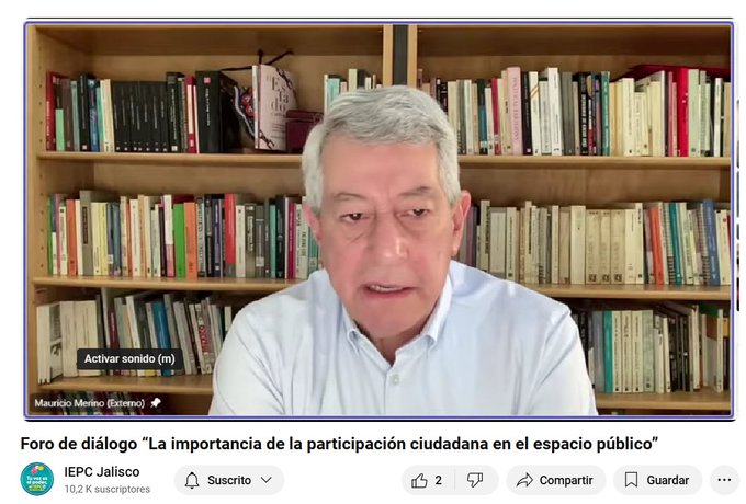 El Centro de Estudios e Investigaciones Electorales “Irene Robledo” del IEPC Jalisco realizó hoy de manera virtual el Foro de Diálogo “La importancia de la participación ciudadana en el espacio público” impartido por el Dr. Mauricio Merino Huerta donde nos compartió un análisis profundo y describió con claridad las barreras estructurales y políticas que enfrenta la participación ciudadana en los procesos democráticos.