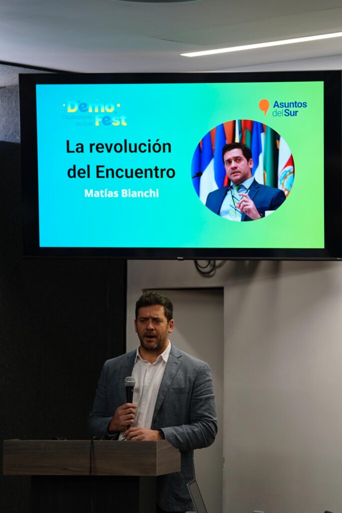 Finalmente, el Dr. Matías Bianchi, Director de Asuntos del Sur, dictó la conferencia “La revolución del encuentro”. A partir de un análisis histórico y tecnopolítico, advirtió sobre los efectos de la manipulación algorítmica y la polarización social que debilitan la democracia.